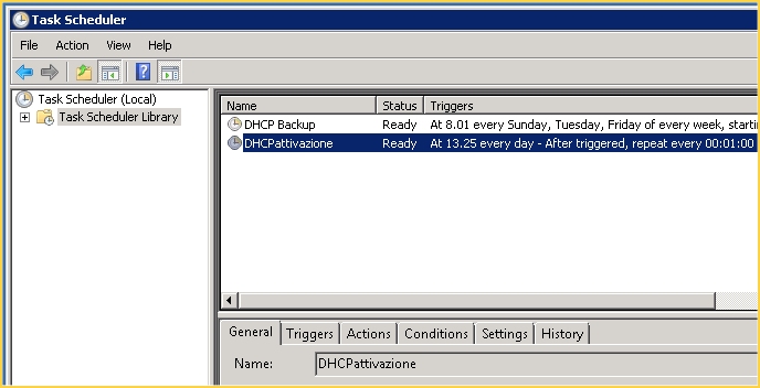 Ho schedulato il VBS come TASK. Non ho assegnato al TASK nessun’orario di esecuzione (La figura è solo indicativa)