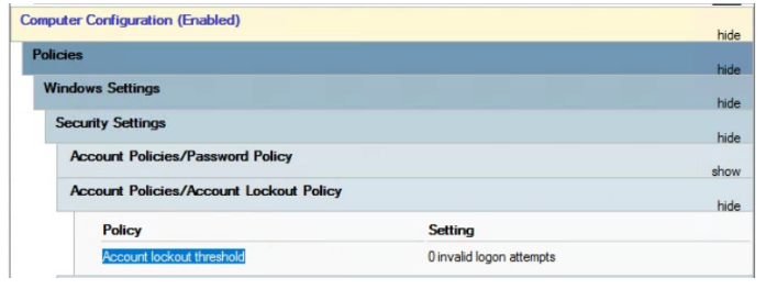 la policy da controllare è : Account lockout threshold