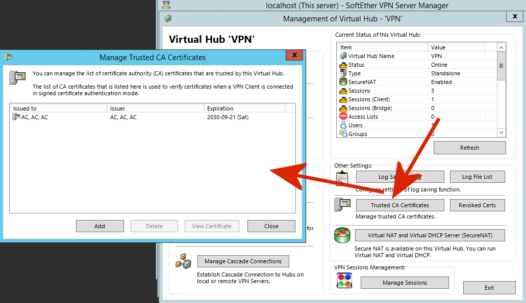 Il Certificato (sul server) deve essere generato con l’interfaccia principale di Softether Vpn Server: