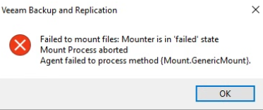 Veeam Community Edition (Issues with Guest File Level Restore of VM) – “Failed to mount files: Mounter is in ‘failed’ state Mount Process aborted Agent failed to process method {Mount.GenericMount}”